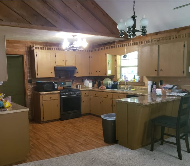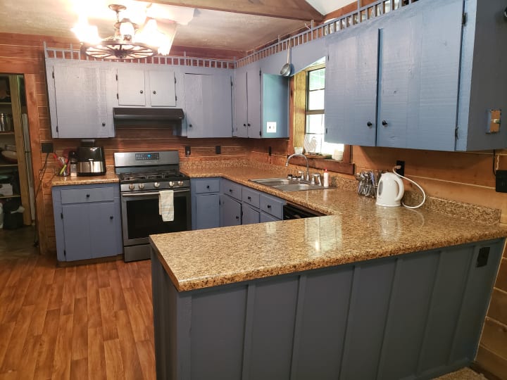 My husband and I have been married for a whole seven years. For the majority of those seven years, we have rented. We purchased our very first home less than six months ago. It is an absolute DREAM home. Log cabin. Land. A creek off to one side. Secluded. There are a few updates we are working toward to make it ours. The carpet must go, obviously. We need a livestock fence ASAP. A handicapped-accessible bathroom is high on the priorities list. My husband wants to gut the kitchen and make all his dreams come true.