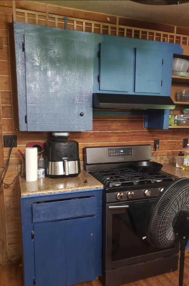Day two comes and I am scrambling for a new plan. I am still determined to get these cabinets painted. We have a local hardware store called McCoys. Thankfully they sold paint, so off I go to find more color options. I brought home another dozen little cards. We go back to the mats. He picks out a deep, bright blue. I’m in the other corner with my trendy grey-blue hues. It is getting later and later in the day. Now our kids have started taking sides. Things are getting heated. It is no longer about paint. It’s about who loves which parent more.