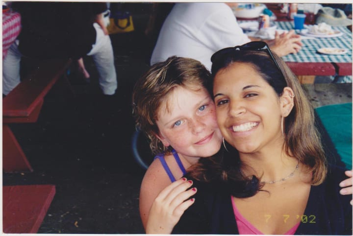 I loved to swim, so much so that I was called a fish. I loved being in the water and that is where I could be found for the majority of each summer growing up. Playing water games and swimming laps, having contests with my sister to see who could hold their breath the longest. Each of us spending hours at a time chasing each other around the pool and forming whirlpools to turn around and fight against the current. Summers never lasted long enough. We never had a diving board or a slide to our pool because it was an above ground, 4ft deep circle and was easy to get hurt in if you weren't careful. During one of our swimming contests to see who could swim across the pool and back the fastest, I got a little too free-willed and didn't keep track of where the side of the pool was, so when I came up for air, I hit the bridge of my nose on the metal siding, leaving a permanent dent that can still be seen today if you look carefully enough.