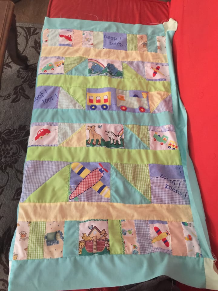 It’s like a sort of meditation, taking the time to measure and using my scissors or rotary blade to cut through the fabric. Shifting pieces around to see what sort of patterns I could make. What kind of story was I telling and how it would all fit. Then finally sewing it all together to make it all one piece. If you ever saw a quilt or have had a chance to own one take a closer look and appreciate the time it took for it to be created. As with anything artistic it takes time, heart and dedication to construct. With any one of my blankets I hope my heart shows the most to the person I give it to. I only craft blankets for friends or family members because I think crafting such a project is very personal. I have to know the person and get a feeling of who their child will be. Like for my nephew, I knew he would be a very adventurous little kid who’d be beyond fearless. I made sure to incorporate airplanes because I know he’s going to soar one day.