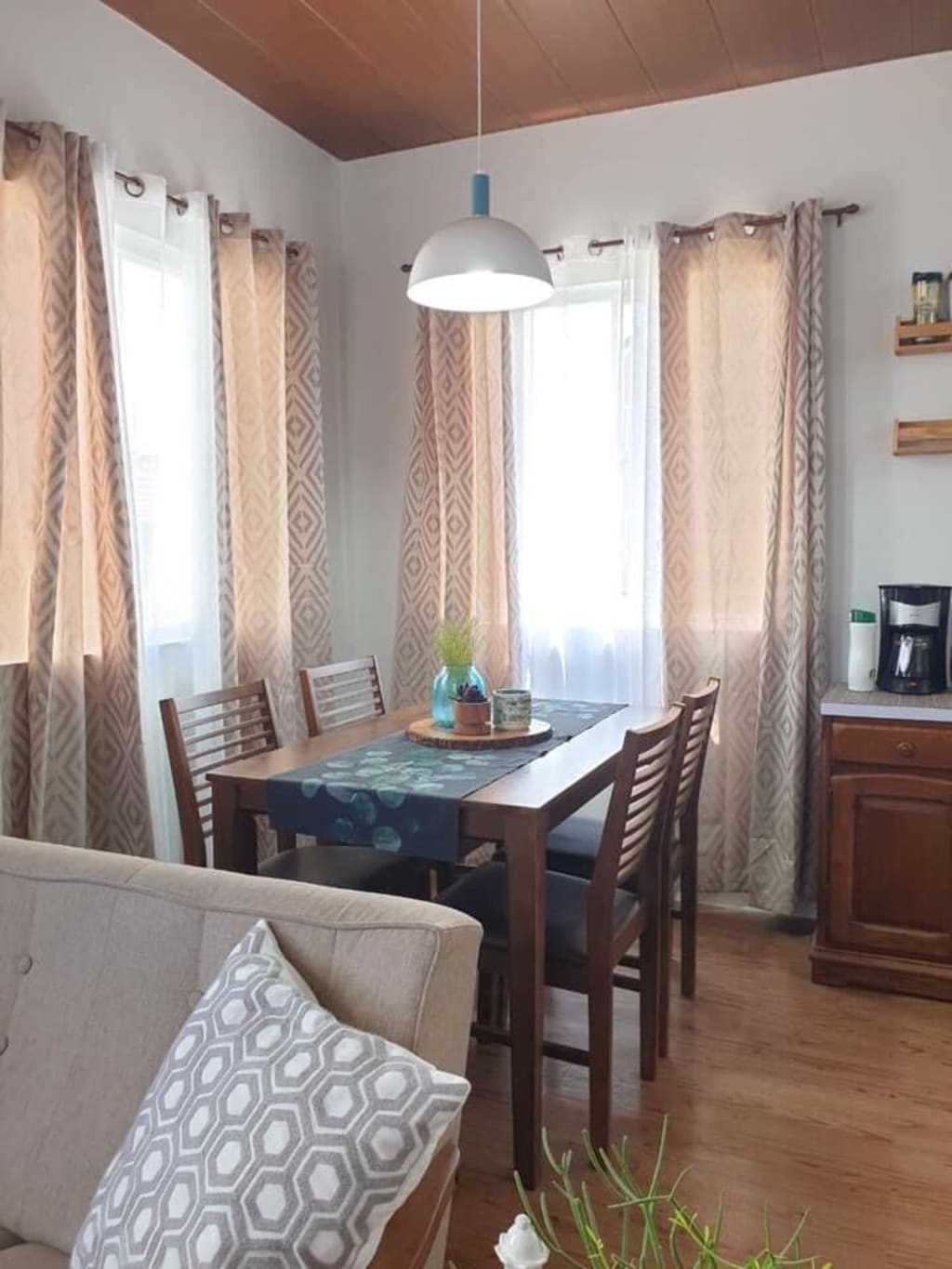 I bought a homey classic-looking dining table and upgraded my curtains in the dining area. I just wanted to show it to them.