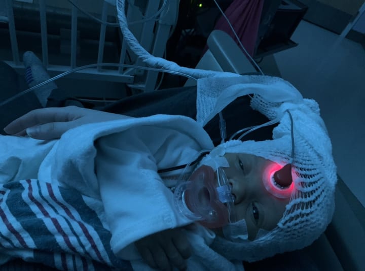 Unfortunately we very quickly found out that my son would be there for more than just a couple days when he ended up with a feeding tube and put on oxygen.