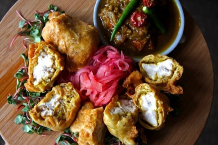 It is an attractive envelope. In square_shaped dough spiced meat, even bheja, chicken or crushed mutton, and beaten eggs through masala_fried onions covers and fried in a pan. Although serve by means of sliced onion jewels plus green chutney.