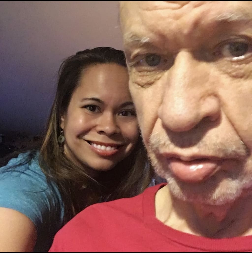 At a rest stop off of I-95, I learned men don’t seem comfortable with a woman in the men’s restroom. I don’t know what I expected when I entered while helping my dad inside, but I figured we’d mostly be ignored. After all, there was nothing really to see. Just a short half-Filipina woman helping her tall, ailing, confused, Caucasian father inside.