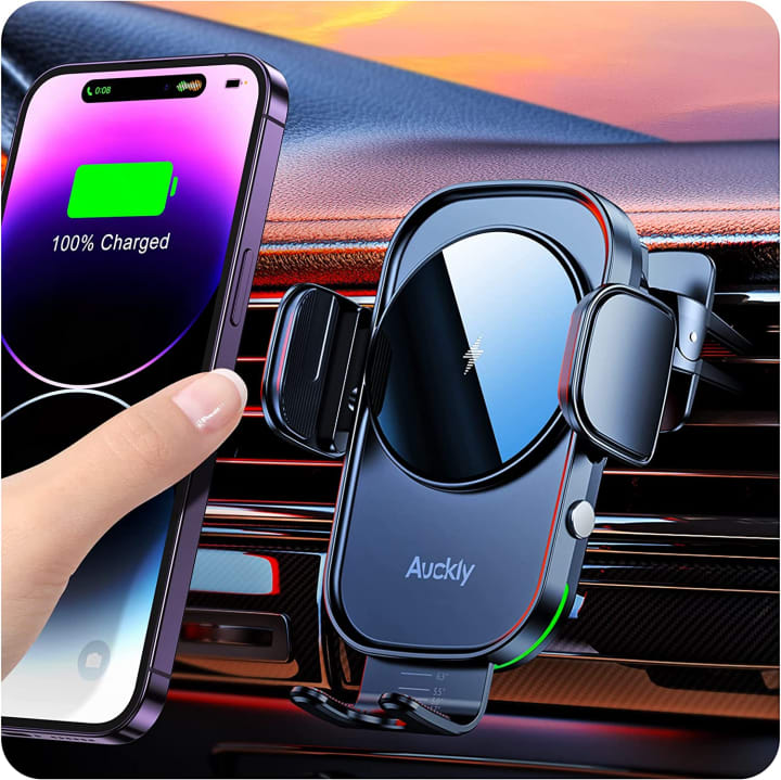 Introducing Auckly 15W Fast Wireless Car Mobile Phone Holder with Charging Function: Never again struggle with charging your phone while driving!