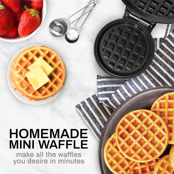 The Elite Gourmet EWM013B is a compact and convenient kitchen gadget that allows you to make delicious waffles in just 5 minutes. With its easy-to-clean nonstick cooking plates, you can enjoy crispy 1-inch thick waffles without the hassle of a messy clean-up. This waffle maker is versatile and can also be used to make savory waffles, sandwiches, cookies, cakes, and snack pockets. Its cute and compact design makes it perfect for small spaces such as dorm rooms, camping trips, and any sized kitchen. The Elite Gourmet EWM013B is easy to use, and it includes 9 delicious recipes to get you started. And, with the deluxe plates that simply wipe clean with a damp cloth, cleaning up is a breeze!