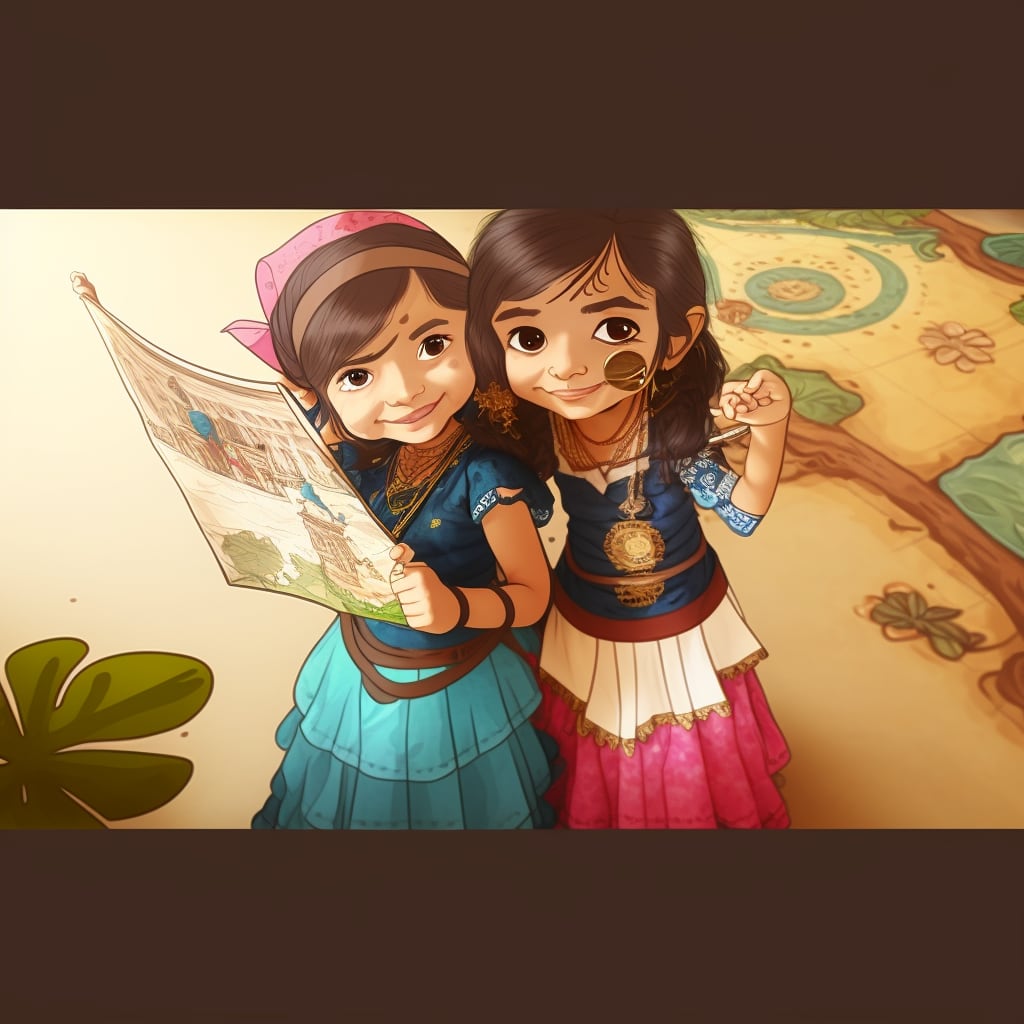 And so, the story of Riya and Diya, the sisters who went on an adventure and became heroes, came to an end. But their bravery, kindness, and love for their kingdom and each other would never be forgotten. They continued to inspire people for generations to come, and their story was passed down from parent to child, from generation to generation, always reminding us that even the smallest and bravest among us can make a big difference.