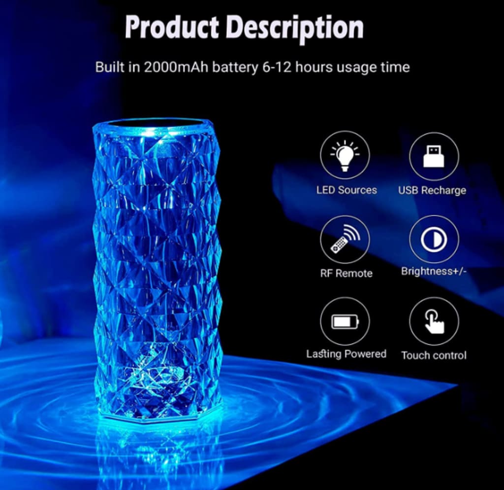 Elegant Rose Light - Special 3D technology, the 3D effect is like a diamond. The refraction crystal lamp is bright and colorful, very practical. The exquisite crystal table lampshade adopts diamond cut surface to show the gorgeous temperament, decorate your living room and create a comfortable and romantic atmosphere.