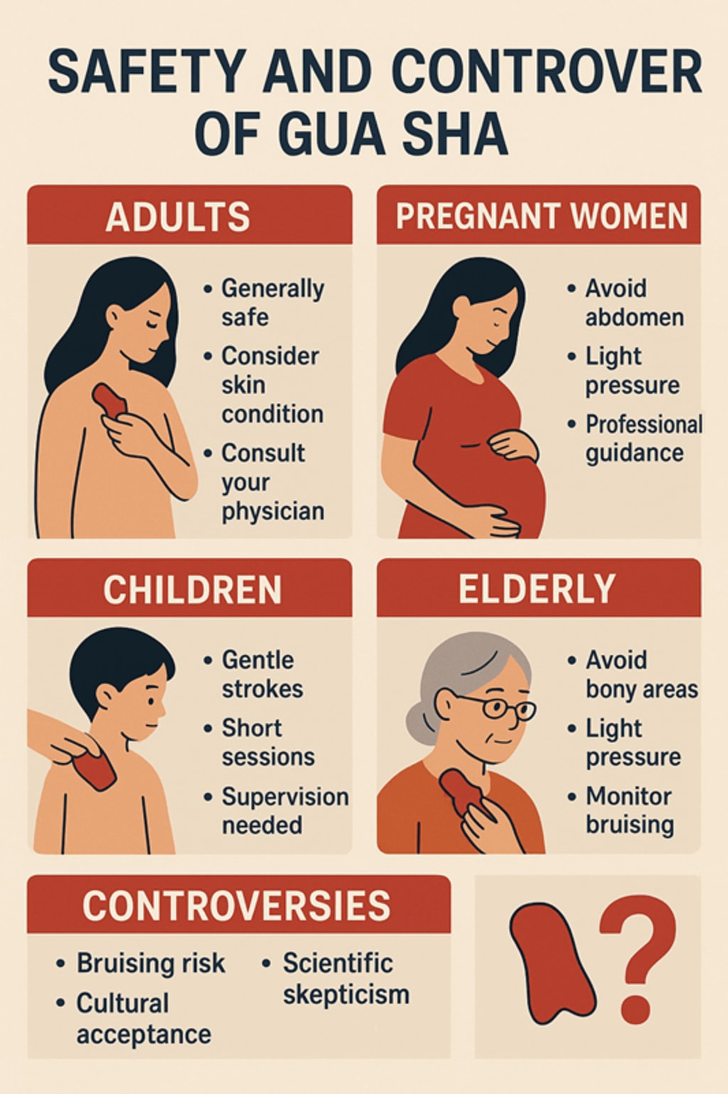 Explore the safety and controversies of Gua Sha for adults, pregnant women, children, and infants. Learn about potential risks, scientific debates, cultural acceptance, and ethical considerations to use this traditional therapy responsibly.
