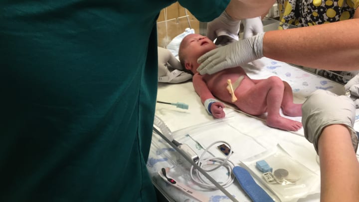 The hospital staff tried to work as quickly as they could to help my son breathe. Once they administered the breathing machine, they wrapped him up in a nice warm blanket and took him away. Then me and my husband were sent to another room to sit and wait, not knowing what just happened and when we were going to see our son again.