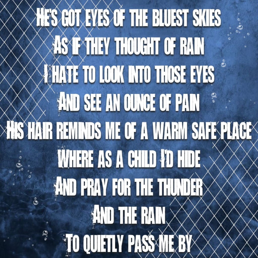 From the time I brought him home, till now, I have always sang "Sweet Child O' Mine," by Guns 'n' Roses, to him. He was the best and sweetest thing to ever come into my life, even though it wasn't very long, but still, many years later, I still feel the same. This song became Nick's song from me, and even my mother would sing it to him. He had the bluest eyes, and warmest hair. I never wanted the cruel world to touch him.