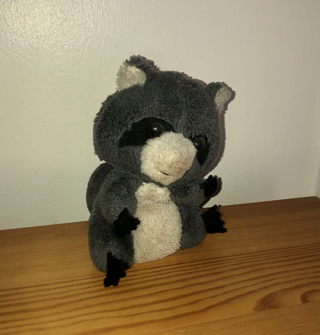Pete had the advantage of being cute, unlike the raccoon at the end of one of my children’s books. I can’t track down the title, but as I recall, the story involved two or three bears who couldn’t sleep because they heard noises in the night. What was the culprit? You turned to the last page and there was a picture of a raccoon in a tree! It probably wasn’t meant to be scary, but I know I was scared to the point of being afraid to turn that last page. Perhaps that was Pete’s purpose, to make raccoons less scary. Whatever the case, he quickly became a treasured toy.
