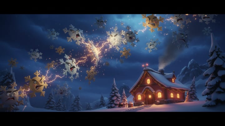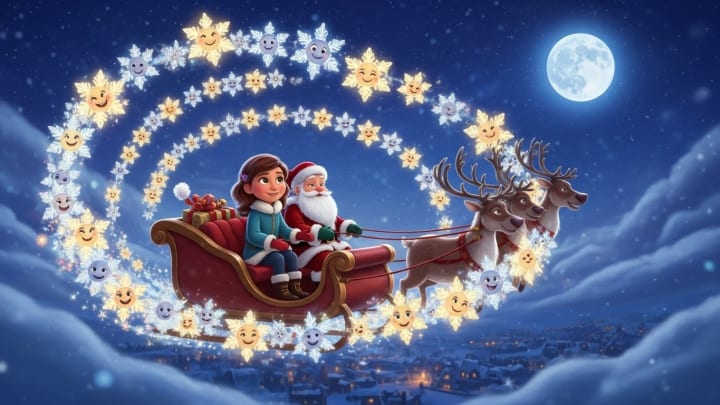 Above the immense workshop of Santa Claus, the sky was rumbling. Not like an ordinary storm, but like a terrible argument between thousands of tiny bright voices. Because at the North Pole, the snowflakes were not like anywhere else. They were alive! Each one of them carried within a spark of light, and together, they formed the sparkling magic that illuminated Christmas night.