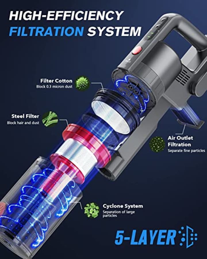 If you're looking for the best cordless vacuum cleaner for your carpets and hardwood floors, look no further than the Fykee Cordless Vacuum Cleaner. This adjustable mode cordless vacuum comes with a large detachable battery, a 1.2L dust cup, and an ultra-quiet stick vacuum cleaner that can run up to 35 minutes. It is perfect for cleaning carpets and hardwood floors quickly and efficiently, and it will help keep your home clean and dust-free.