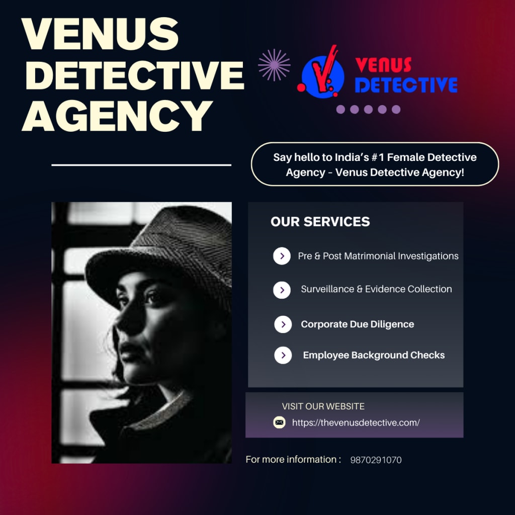 Whether you require the accuracy of a Private Investigator in Noida, the expertise of the Best Private Detective in Noida, or the intuition of a Woman Detective in Noida, Venus has you covered.