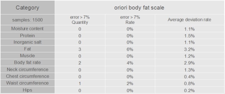 In the test, the most incredible thing is that the body circumference data measured by this body fat scale is almost the same as the data measured with a ruler. This is completely beyond our imagination. We have never seens such a body fat scale like this.