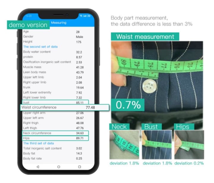 The smallest deviation is only 0.2%, which makes it impossible to doubt the credibility of these data. When you see these data truly displayed on your phone, you know, it is, its the real data of my body composition.