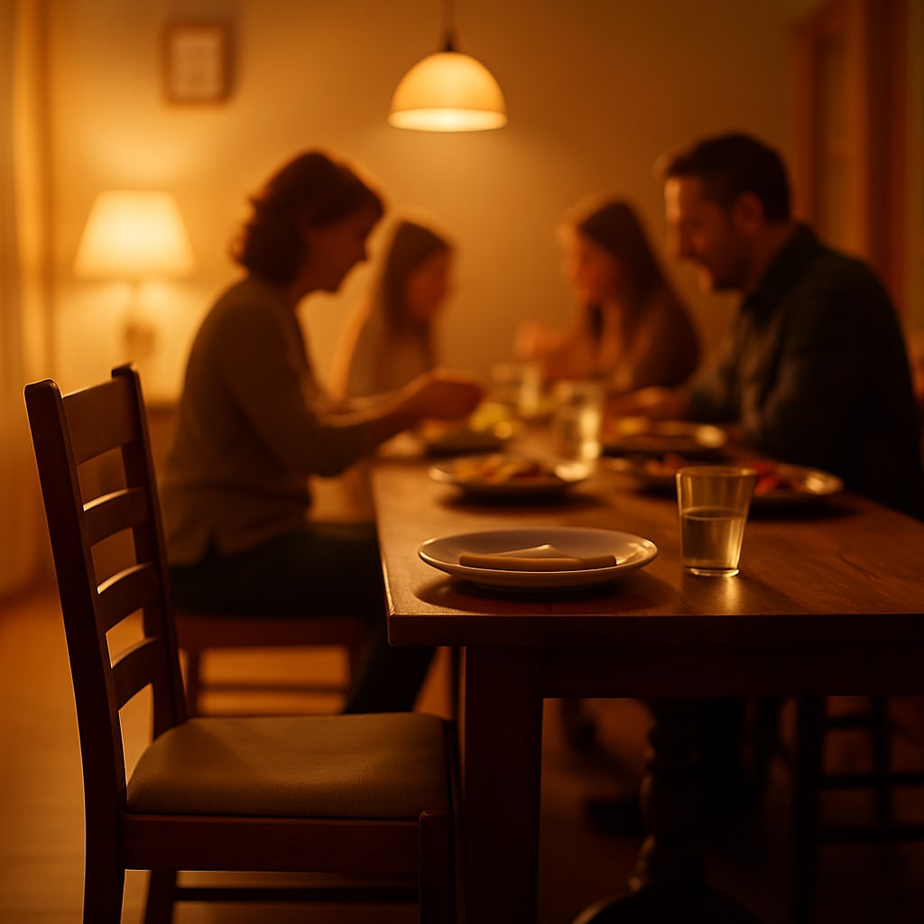 Last month, we gathered again, this time for Mom’s birthday. She’s eighty now, but still insists on cooking herself. The table was set as always, the chair untouched at the end.