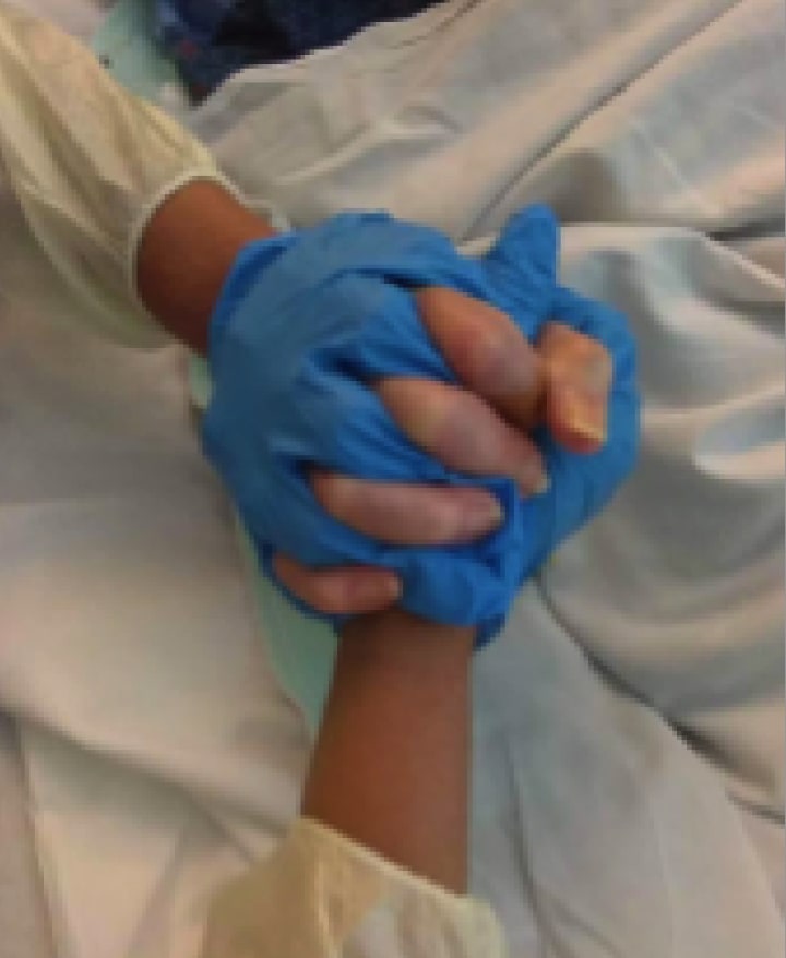 I put my phone inside a disposable glove and set it on the bed beside her head. I pressed Play. Her lips moved as she tried to sing along. Familiar with the words, she wanted to sing along with some of her favorite singers, especially Jorge Negrete. Lost in the music, she calmed down.
