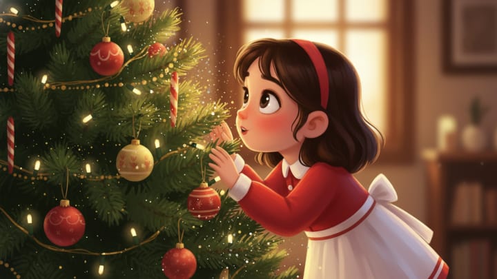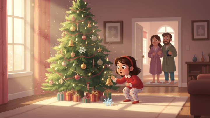 When evening fell and the tree lights came on, the whole house seemed to breathe magic. The reflections danced on the walls, creating mysterious and wonderful shadows. But what no one knew — not Dad, not Mom, not even little Léonie — was that this tree kept an extraordinary secret.