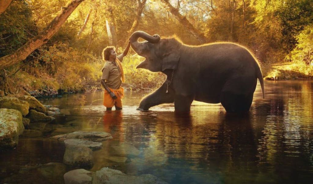 The Elephant Whisperers is a heartwarming love story that takes place at Theppakadu Elephant Camp, which has been rehabilitating elephants for over a century and is one of Asia's oldest such camps. While the narration is primarily driven by voiceovers and follows a relatively straightforward plotline, the storytelling strikes a gentle and convincing balance, thanks to the engaging subjects. Bomman and Bellie, with their captivating on-screen presence, make it difficult to look away from the screen. Raghu, with his playful and vulnerable nature, is equally adorable, and his interactions with the couple are especially rewarding. The couple's love and affection for Raghu are met with childlike enthusiasm.