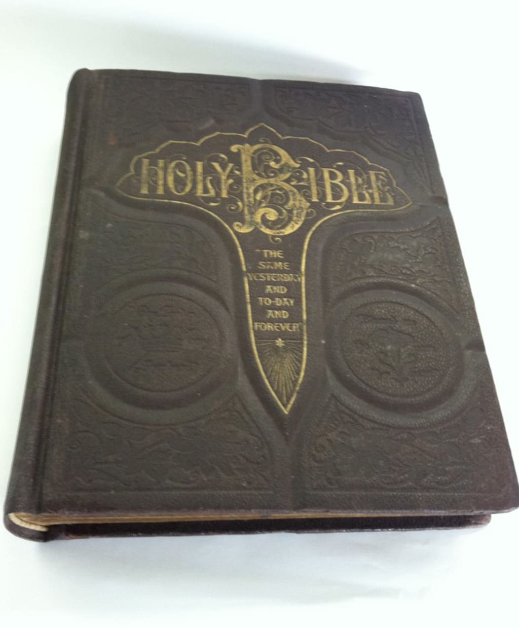 A 33 -year-old man now, discharged from the Army under medical circumstances, I've moved many times since that day but I always lovingly pack that book and make sure it went everywhere with me, and to this day, it remains the center of my living room standing in a glass case, the gold leaf lettering long since faded but still I see that little lady carefully pouring over its pages as she read to me the stories and parables from it.