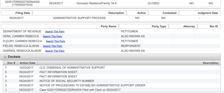 Two separate child support cases were filed against my ex-wife, the child’s grandmother, and both were dropped. These cases highlighted a systemic failure in the way custody and support were assigned. I was out of state at the time of our divorce, yet the court and the Department of Revenue used my absence as a reason to assign custody obligations and financial responsibility in ways that did not align with the facts.