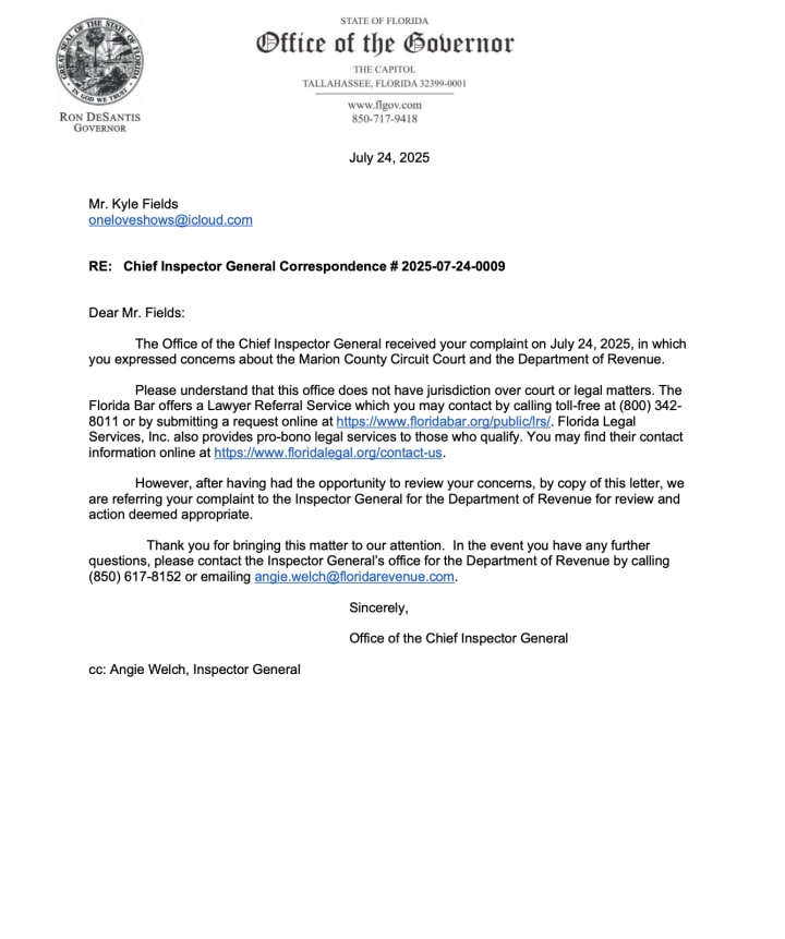 I posted over 350 times. Social media became my courtroom. My posts prompted federal and state oversight offices to take notice. The HHS Office of Inspector General referred my inquiry to the Office of Child Support Services. The Chief Inspector General for Florida acknowledged my concerns.