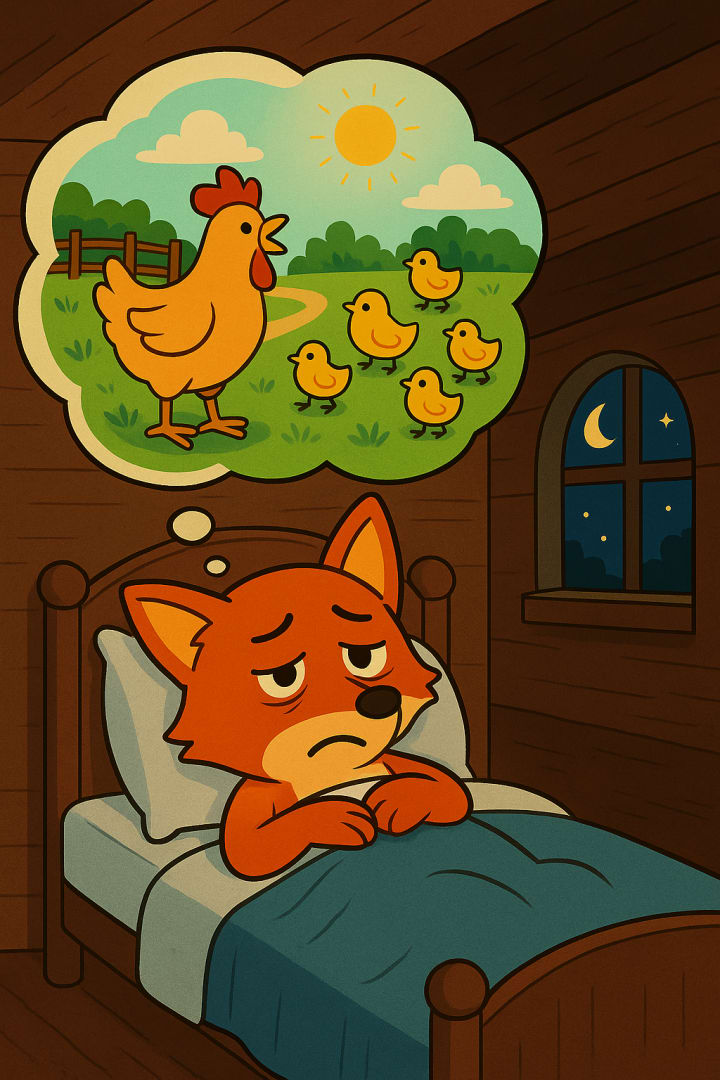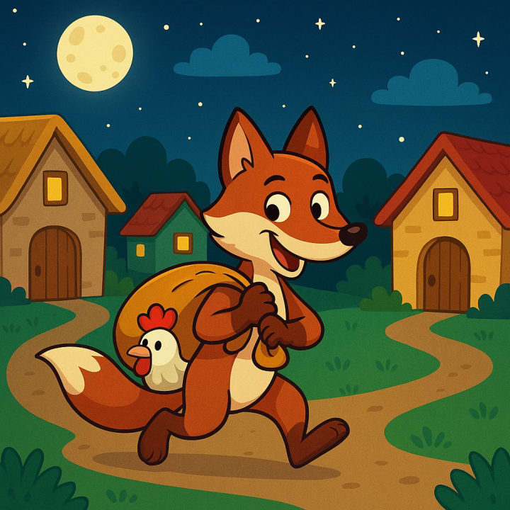 Once upon a time, there was a sly fox who crept into the village every night, stealing hens and chicks from the farmers. The old farm dog was no longer strong like before. He fell asleep early, snoring beside the gate, leaving the henhouse unguarded. That made the fox’s work easy—too easy.