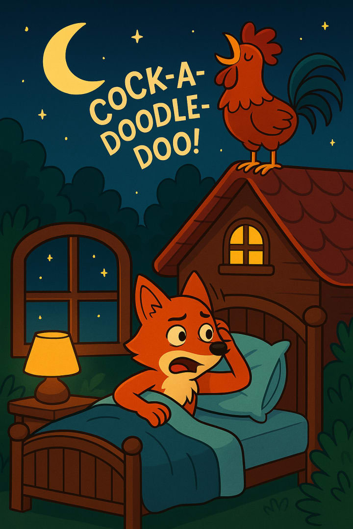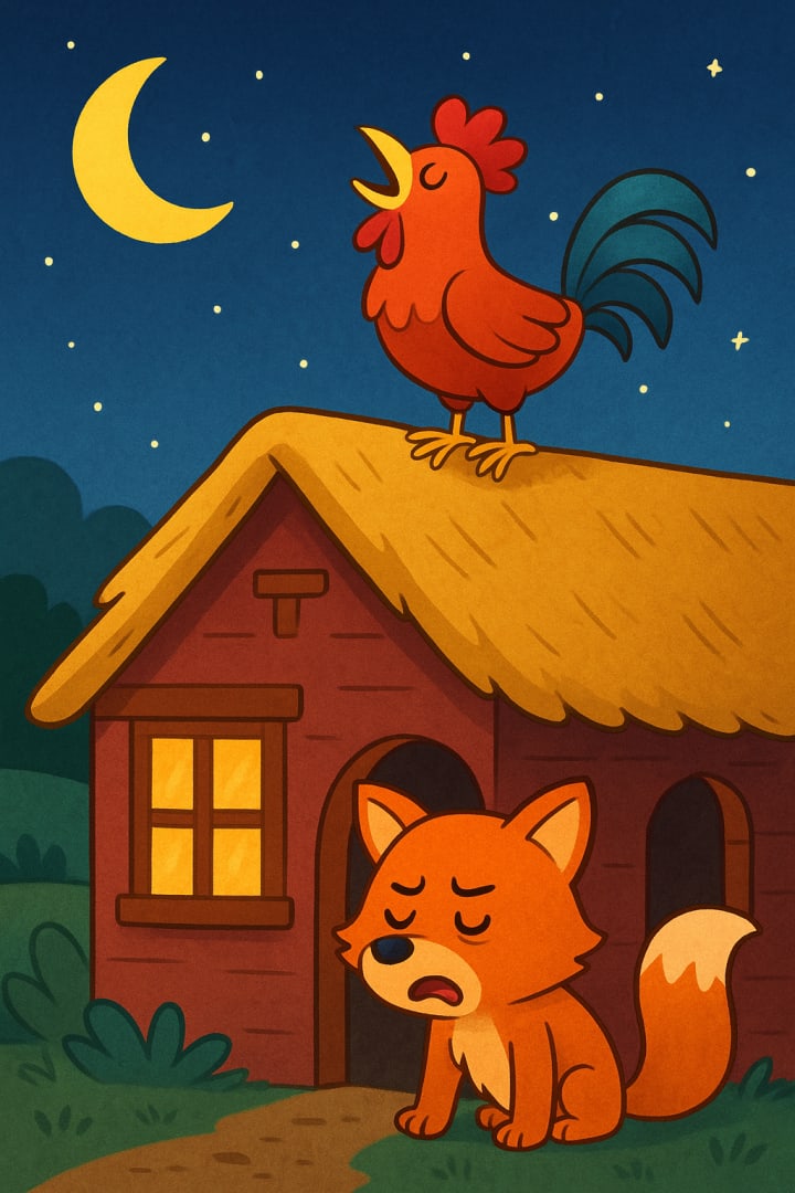 That was exactly what the clever rooster wanted — to keep the fox awake so he couldn’t return to the farm.