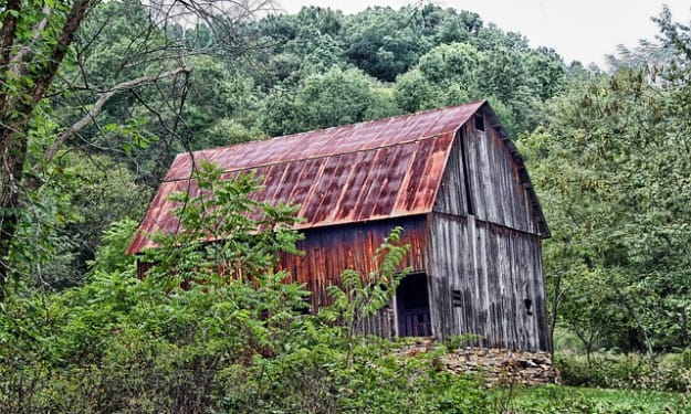 Frank ambled out to the lean to and found the oldest and dirtiest pair of overalls. Then he rummaged in Bessie’s rag bag for the shirt she had insisted, “Would fall blame to pieces if I wash it again.” He took off his better shirt and hung it on a peg and replaced it with the frayed one. He hiked the overalls up over the shirt and stuck a bent nail through where a fastener used to be. He accessorized with muddy boots and a straw work hat that appeared to have been sat on.