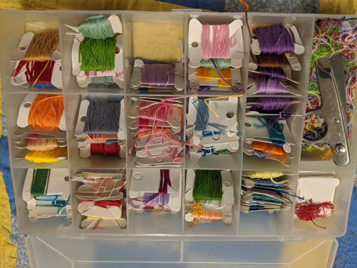 First I found my embroidery floss and my fancy thread clip scissors.
