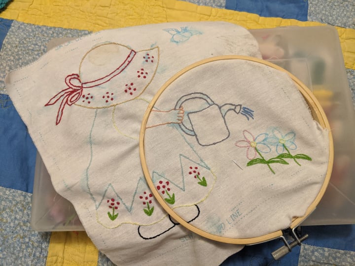 “I bought these special scissors with some of the first money I earned sewing for my neighbor,” I told them seriously. “They must stay in the embroidery box and may only be used on thread.” The girls laughed. “Mom, you look so serious.” Unsure how to convey the sacredness of this legacy, I let it go for now and proceeded to teach them the basic stitches they needed to know. I taught them how to hold the clippers and how to separate the floss into individual strands. They eagerly practiced threading needles and tried out the different stitches.