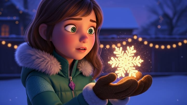 Thousands of miles away, in a small house whose windows were decorated with fairy lights, a little girl named Samantha gazed sadly at the gray sky. Christmas Eve was approaching, and there wasn't a single snowflake in sight. As she walked in the garden, a golden flash caught her eye. Unexpectedly, a single snowflake, not white, but a pale gold as warm as honey, fluttered through the heavy clouds and landed gently on her woolen-gloved hand. It didn't melt. On the contrary, it emitted a soft pulse of warmth. Samantha felt it at once: this wasn't a random call. It was an invitation. An urgent need.