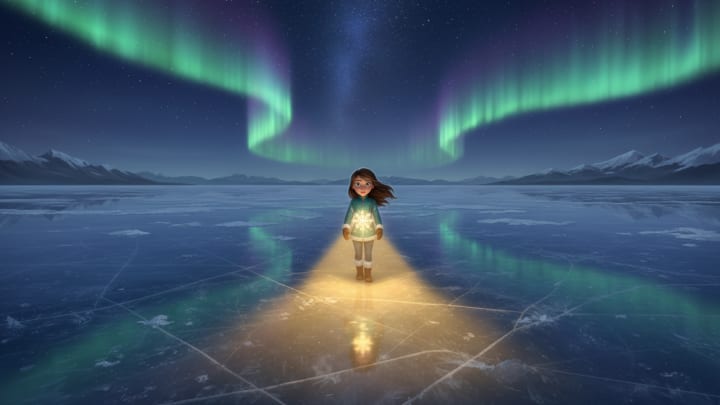 Without hesitation, without even truly understanding, she felt her heart guiding her northward. The golden snowflake then rose, becoming a small floating lantern that lit her path. She packed a few things, left a note for her parents, and, driven by a certainty stronger than doubt, followed the light.
