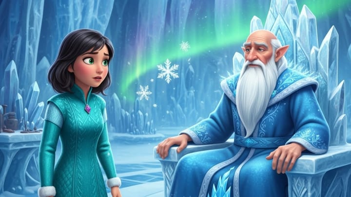 Her journey was a succession of wonders. The snowflake guided her through forests slumbering beneath the frost, over frozen lakes like shattered mirrors, and northward, ever northward. She traveled on a sleigh driven by a mischievous-looking old man, then on the back of a reindeer whose coat was whiter than cream. Finally, after days and nights when the sun never truly rose, she arrived at the foot of the ice mountain. An invisible door opened for her, and she entered the silent palace of Aeolus.