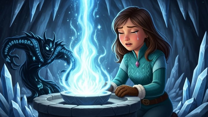 Her heart filled not with ancient magic, but with all the love and wonder that winter had ever inspired in her. A tear, warm and pure, rolled down her cheek. Without thinking, she let it fall into the crystal basin.