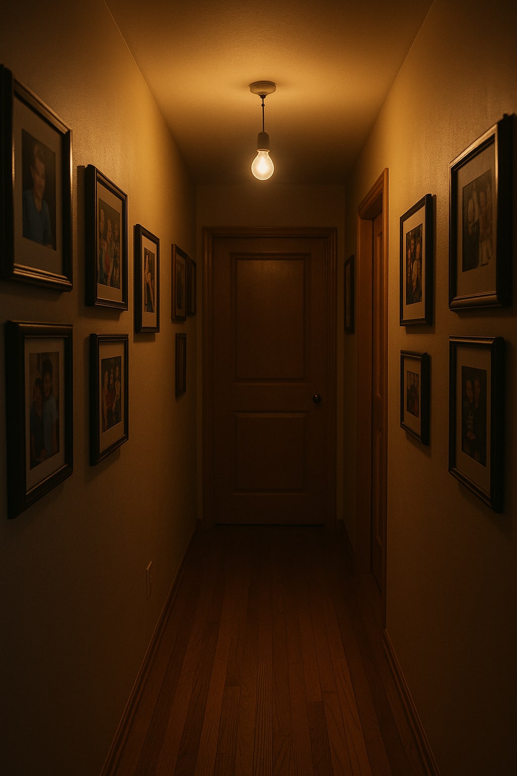 There’s a small hallway between our bedrooms and the kitchen. It’s narrow, lined with family photos—school portraits, beach trips, a wedding picture that’s begun to fade.