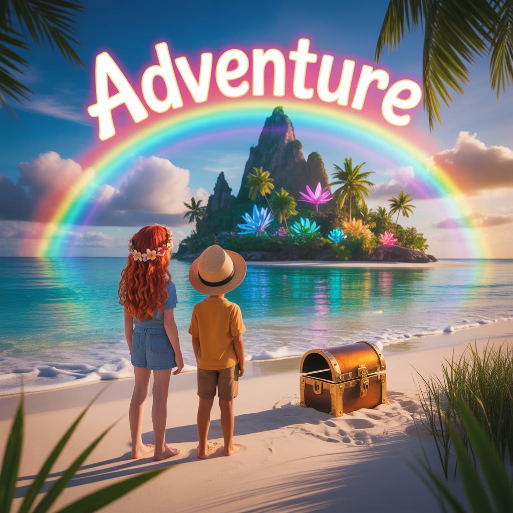 Once upon a time, in a little village by the sea, there lived two adventurous children, Emma and Max. They were inseparable, and their days were filled with excitement and imagination. The village was known for its lush gardens, sandy shores, and a mysterious legend that had been passed down for generations: the story of the Lost Treasure of Rainbow Island.