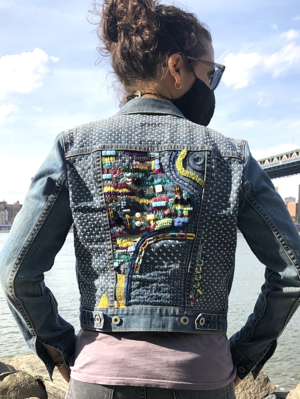 We jotted down a fashion plan on a scrap of paper. My denim outerwear was getting an upgrade. I snipped off a strand of thread. I threaded a needle. I made my first knot. I started embroidering what would be known as my pandemic jacket.