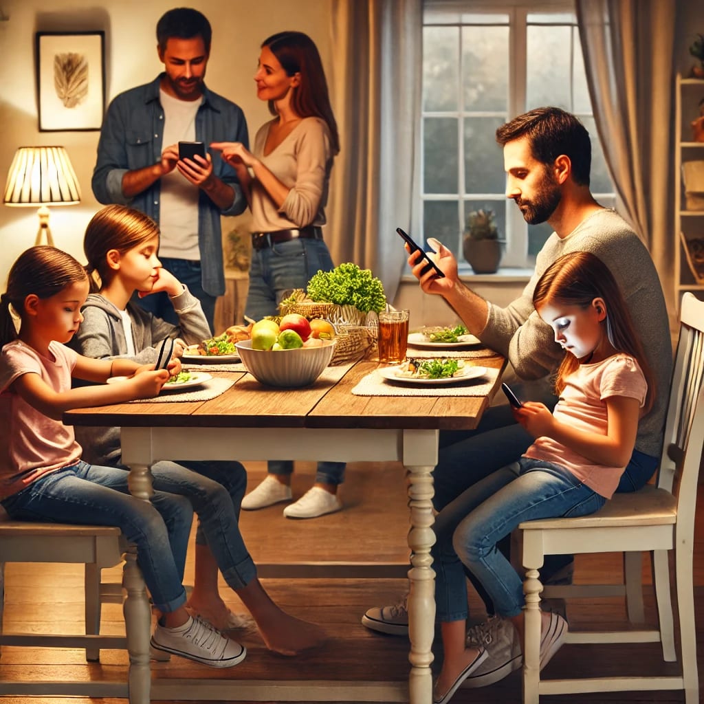 Meanwhile, at the other end of the table, Jake and Sam were engrossed in a game on their phones, seemingly oblivious to their surroundings. Sarah gave a half-hearted reminder, “Boys, dinner’s ready,” but her voice lacked the conviction Emma's had. Jake barely acknowledged her, while Sam mumbled, “Just one more level.”