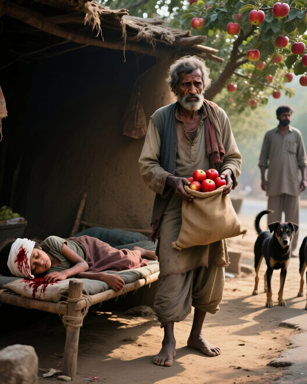 He arrived at the mud hut and gently laid four apples on the bed beside his daughter. Only then did he realize that Abiha herself was badly hurt—the cloth bandage on her head soaked with blood. “Pino, what happened?” he asked, voice shaking.