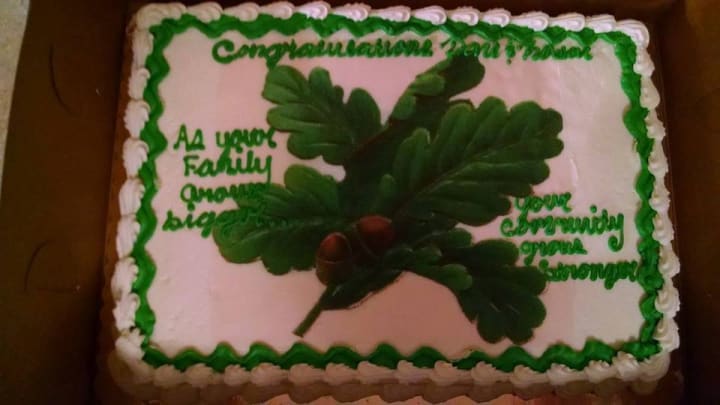 5. There was a big cake and a potluck. The pagan friend who brought it explained that oak leaves and acorns are a symbol of new growth. (pictured below)