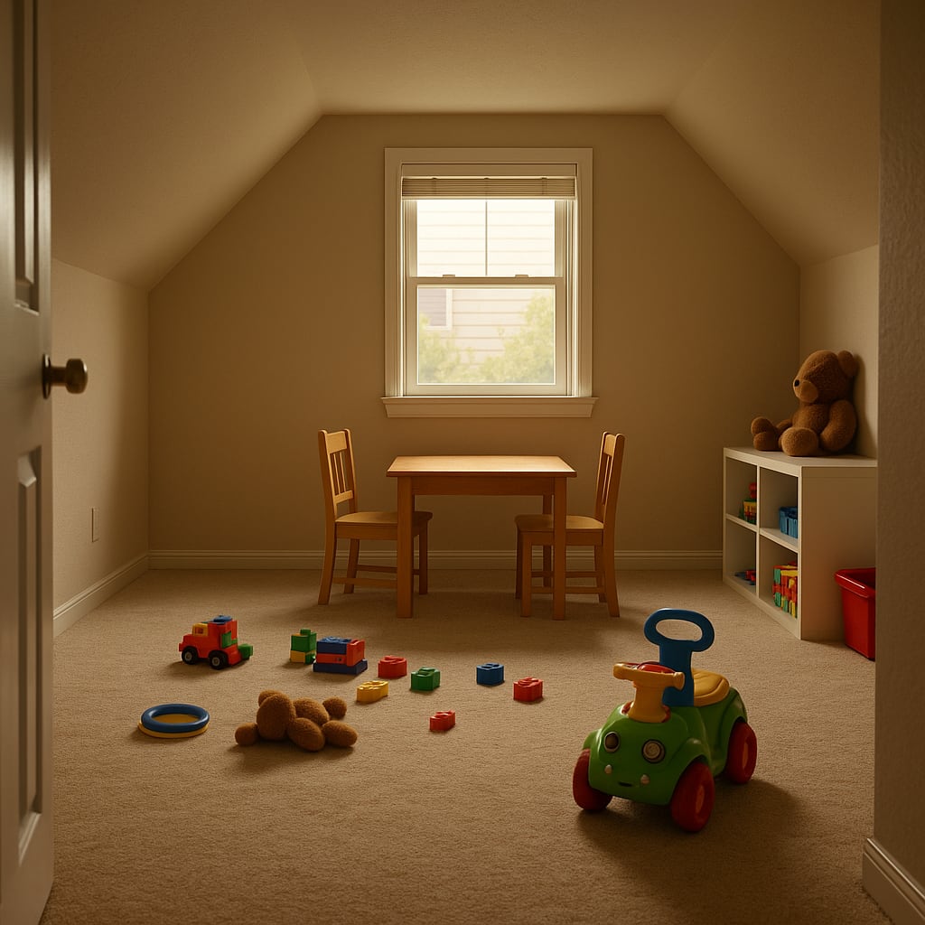 That little room at the top of the stairs still looks the same—the same toys, the same scuffed walls, the same slanted ceiling. But now, when I stand there, I feel something different.