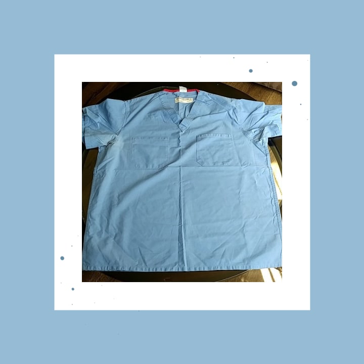After about an hour, my uncle just got off of work and walked through the door. Since he worked at the local hospital, his uniform consisted of scrubs. Over time he collected a trash bag full of scrubs, and if you work in the medical field, you can never have enough scrubs. That particular day he outsmarted me and had a change of clothing that he could wear. Scrubs can be very comfortable, but after a twelve-hour shift, the last thing you want is a reminder of your stressful workday once you got home. Since making my "back to school" announcement earlier that year, my uncle would express how we would work together one day and promise that he would do everything he could to get me a job at UCSD (University of California San Diego) hospital. His enthusiasm made me excited to finish and graduate, so if I needed any pick-me-up, he would be the person to provide that. After hearing his last "I'm proud of you," he asked if I were hot? I said "yes," and he got up from the couch and said, "I might have an old shirt you can wear." He goes into his scrub Barney bag and pulls out an old yet clean scrub top. He handed it to me and said, "if you can fit it, then you can have it." the words thank you exited from my lips so fast that I forgot how hot I was. I grabbed the shirt, raced to the bathroom, and changed.