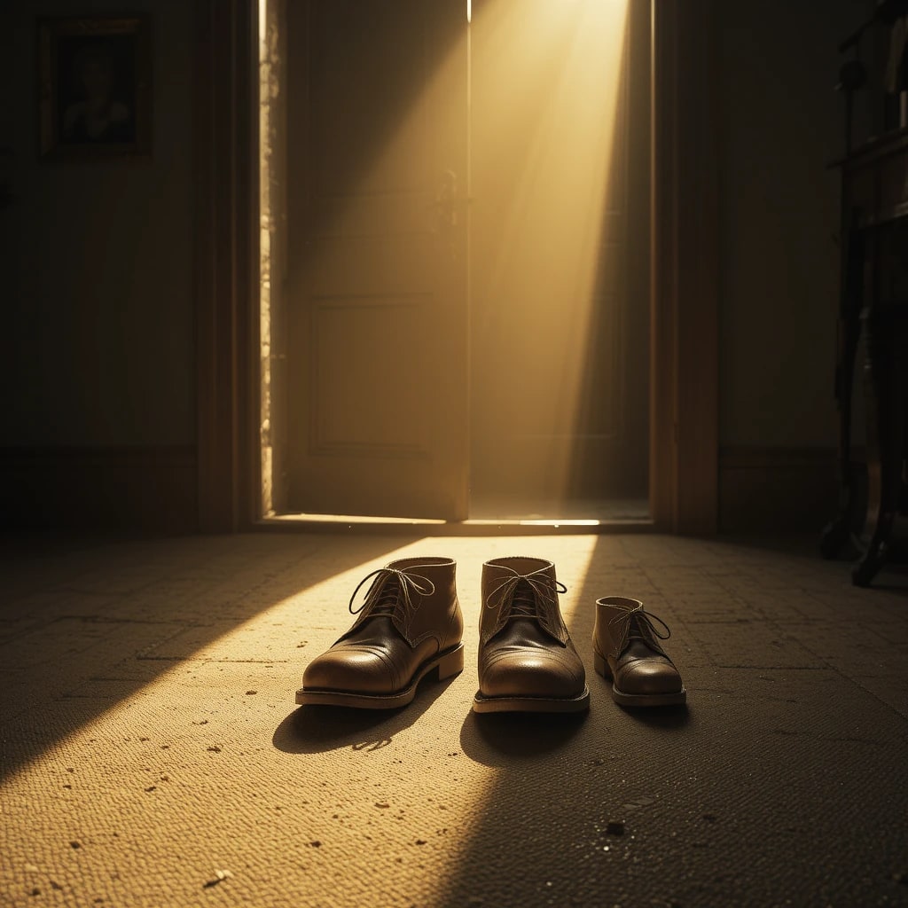 Passing the shoes felt like passing him—waiting, as if he’d slip them on again.