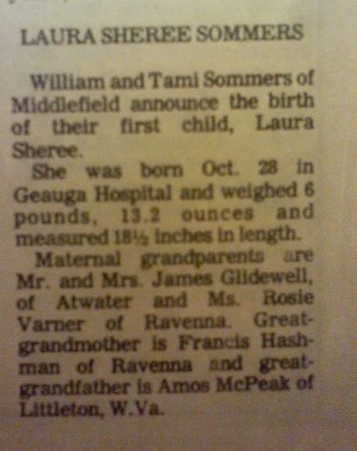 I was born in Chardon, OHIO. It's basically in the town of Middlefield. I grew up there till I was around 7 or 8 years old. It was a small apartment with only two bedrooms. At that time, my brother and I were still young enough to share a room. It was right across the hall from our parent's room. It was just a tiny apartment where we lived.