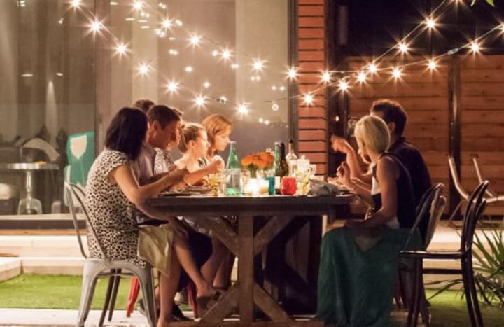 Hours later, as twilight consumed the evening sky, we gathered at the table on our covered patio.