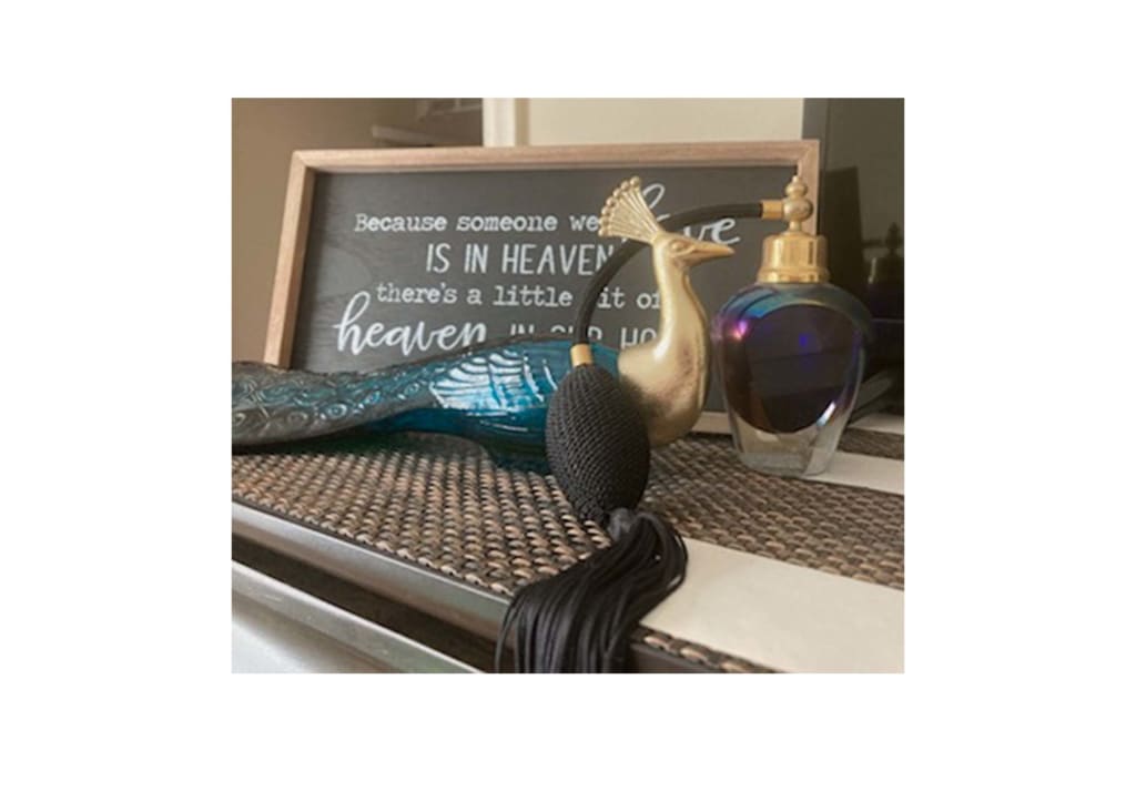 The week after Easter, I got 2 packages from my mom and aunt. They were from my grandma’s house. I had no clue what to expect inside of the package’s. As I unpacked the boxes, I saw them. The entire collection of perfume bottles. But I also, noticed something else. There was a picture that I had drawn for my grandma in 2005. I had gifted it to her. So, I decided to make a memorial wall, in honor of my grandma.