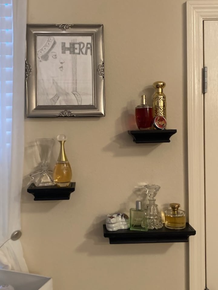 I waited months on end. My excitement and anticipation to get my grandma’s perfume bottle collection kept growing. I had it all planned out of what I wanted to do. I wanted to get floating shelves to put them all on.